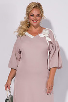 Платье женское полуприлегающего силуэта, с застёжкой на потайную молнию по среднему шву спинки. Перед с нагрудными и талевыми выточками. Спинка с талевыми выточками, средний шов заканчивающийся шлицей. Рукава втачные, одношовные, короткие.