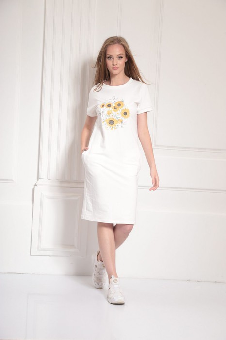 Натуральное трикотажное платье с дизайнерской вышивкой "Подсолнухи"