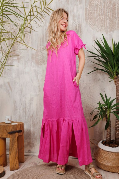 Летнее льняное платье "АМУЛЕТ" с коротким рукавчиком на кулиске и разрезами по переду юбки. В швах удобные карманы. Наши платья дают невероятное чувство комфорта, защищенности и красоты. Все изделия коллекции "АМУЛЕТ" имеют натуральную ткань, сложную обработку всех внутренних швов и энергосберегающий крой. В подарок идет шопер с логотипом бренда.