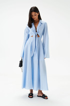 Трикотажное платье средней длины, с красивами рукавами на сборке по низу. Горловина-лодочка с тонкой элегантной бейкой. Особенно красивый трикотаж - немного меланжевый и имеет еле-заметную тончайшую люриксовую ниточку, При чем, блеск настолько мягко проигрывается, что очень мало заметен, но в то же сремя придает богатства и эффектого вида изделию. По этому платье прекрасно подойдет для любого случая в жизни.