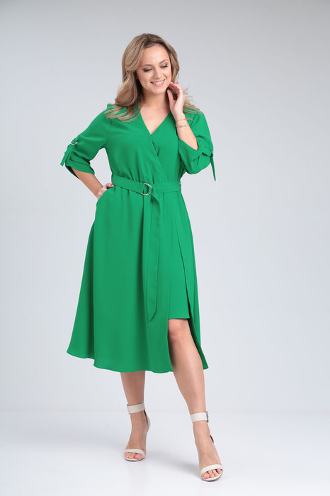 Элегантное женское платье из лёгкой струящейся ткани,отрезное по линии талии и присобрано на резинку.По переду изделия регулируемый запах горловины на потайную кнопку. Ниже талии по переду двойная юбка ,это придаёт изделию особую изюминку.В боковыхшвах действующие карманы. Рукав регулируемый на полукольца. Широкий пояс в комплекте.