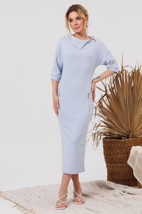 Натуральный хлопковый трикотаж, который очень приятно и комфортно к телу. Ассиметрично сделана молния на рукаве переходя в воротник. Карманы на молнии спереди платья.