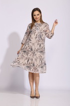 Элегантное платье женское из шифоновой ткани, отрезное по линии талии, на резинке. По полочке и спинке идут вертикальные подрезы с воланами. К платью идет съемный пояс. Юбка фасона "солнце". Съемный пояс в комплекте. Длина спинки -42см, длина юбки -100см
