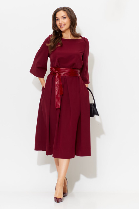 Шикарное женское платье идеально на любую погоду: под босоноржки либо под сапоги и пальто. Отличный вариант универсального изделия: подойдет как для повседневного и офисного гардероба, так и для праздничного выхода.  Отрезное по линии талии. По полочке объем груди создается за счет направленных складок из подреза. Объем юбки создается за счет центральной встречной и 2-х односторонних складок. По бокам в юбке- карманы. Рукав втачной,  3/4 длинны с отворотом.  Вырез горловины лодочка с отложным воротником. В комплекте съемный пояс. Длина спинки до подреза -45 см., длина юбки -77см. Длина рукава-44 см.