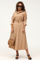 Шикарное женское платье из хлопка. Идеально на любую погоду: под босоноржки либо под сапоги и пальто. Отличный вариант универсального изделия: подойдет как для повседневного и офисного гардероба, так и для праздничного выхода.  Отрезное по линии талии. По полочке объем груди создается за счет направленных складок из подреза. Объем юбки создается за счет центральной встречной и 2-х односторонних складок. По бокам в юбке- карманы. Рукав втачной,  3/4 длинны с отворотом.  Вырез горловины лодочка с отложным воротником. Пояс из эко-кожи. Длина спинки до подреза -45 см., длина юбки -77см. Длина рукава-44 см.