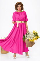 Платье макси свободного силуэта - лучший выбор на лета. Рукав реглан 3/4 длины, низ на резинке. Горловина собрана на резинку. Платье отрезное по линии талии, на резинке. Юбка полусолнце. В комплект входит съемный пояс. ВНИМАНИЕ! Пояс может отличаться от фото. Длина юбки: 93см . Длина рукава: 43см. Длина спинки: 42см.