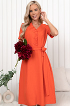 Вечернее платье макси из кружевного полотна, на подкладке, трапециевидного силуэта — дополнение любого образа. Отличный вариан на любое торжество. По горловине V-образный вырез и стойка переходящая в бант. Рукав расширенный к низу, на резинке, фигурный. По полочке и спинке идут 3 присобранных волана. Длина платья (по спинке):(50-54) 135см. Длина рукава: (50-60)-56см.