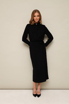 Элегантное и стильное платье от бренда Anastasia Mak идеальный выбор для современной женщины, которая ценит комфорт и стиль. Платье прекрасно подойдет на каждый день, для праздника или вечеринки. Платье полуприлегающего силуэта, длиной за колено, выполнено из однотонной ткани с эффектом атласа. Полочка платья с ассиметричной драпировкой, с правой стороны полочки складки выполнены в области плеча, с левой стороны в боковом шве. Горловина овальной формы. Спинка цельная. Крой платья выполнен по косой, платье без молнии.