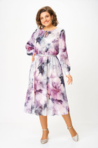 Платье женское прямого силуэта покроя реглан. Лиф переда с нагрудными вытачками, с планками и застежкой на петли и пуговицы. В боковых швах обработаны карманы.  Спинка цельная. Рукав двухшовный с эластичной тесьмой по низу. Низ платья состоит из трех воланов, изделие с подкладкой.