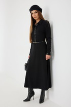 Платье длины миди, полуприлегающего силуэта, отрезное по линии талии.