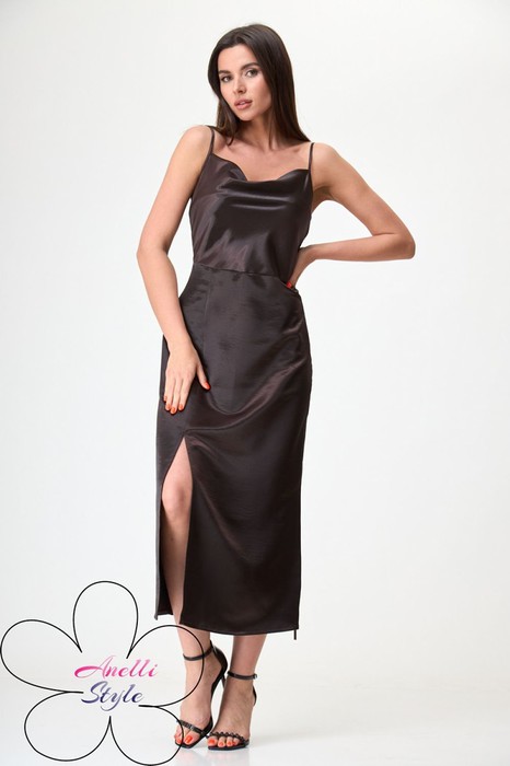 Платье женское полуприлегающего силуэта, на брителях, длина миди. По переду качеля, отрезное по талии. Спереди по юбке игривый разрез. По боковому шву слева функциональный шнурок, благодаря которому вы можете регулировать сборку. В правом боковом шве потайная молния. Платье идеальный вариант для стильных и уверенных в себе девушек. Отлично подойдёт для торжеств: выпускных, свадеб и тп. А так же его можно носить ежедневно, как сараван на футболку и низком ходу. Платье можно дополнить аксессуарами и оно отлично будет смотреться с поясом, дополнительно подчеркивающим вашу талию.