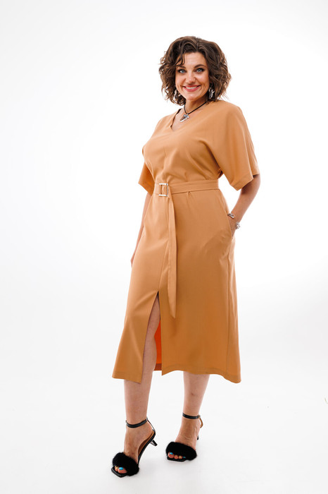 Платье обладает комфортным кроем и идеальной длиной, придающей ему универсальность для различных ситуаций. А благодаря поясу, входящему в комплект, оно прекрасно подчеркнет вашу талию, добавив женственности и элегантности.