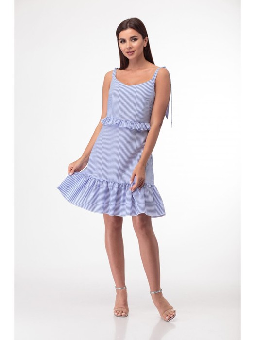Легкий хлопковый сарафан в полоску в цвете «морская нежность» станет идеальным спутником в знойные летние дни. Его полуприлегающий силуэт мягко облегает фигуру, создавая женственный и в то же время непринужденный образ.