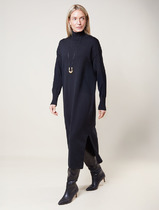 Съемный пояс, входящий в комплект, и металлическая фурнитура придают образу динамику и индивидуальность. Это универсальное платье, которое идеально подойдет на каждый день, особенно хорошо с бордовыми колготами и лоферами.