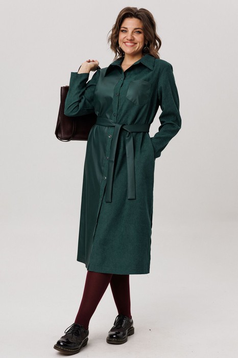Игра текстур, где встречаются благородный вельвет и гладь кожи, рождает уникальный образ, наполненный свежестью и современным звучанием. Это платье от Анелли — не просто предмет гардероба, а многосезонный спутник, готовый стать основой для бесчисленного множества образов, дарящий своей обладательнице чувство стиля и неизменной уверенности в себе.