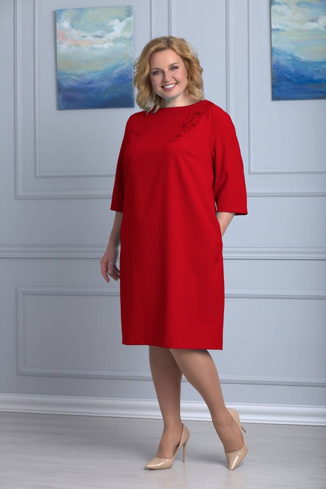 Платье прямого силуэта , рабочие карманы в боковых швах платья;вырез горловины круглый.. Спинка с застежкой пуговицами по среднему шву платья. Декорировано фигурной вышивкой по плечу. Замеры для (56) размера. Длина по переду платья: 97 см. Длина рукава: 40 см Рукав: 3/4. Замеры для всех размеров, данной модели в полуобхвате. Крой свободный: Р-р: 48 (ПОГ:48, ПОТ:39-46,ПОБ:52) Р-р: 50 (ПОГ:50, ПОТ:41-48,ПОБ:54) Р-р: 52 (ПОГ:52, ПОТ:43-50,ПОБ:56) Р-р: 54 (ПОГ:54, ПОТ:45-52,ПОБ:58) Р-р: 56 (ПОГ:56, ПОТ:47-54,ПОБ:60)