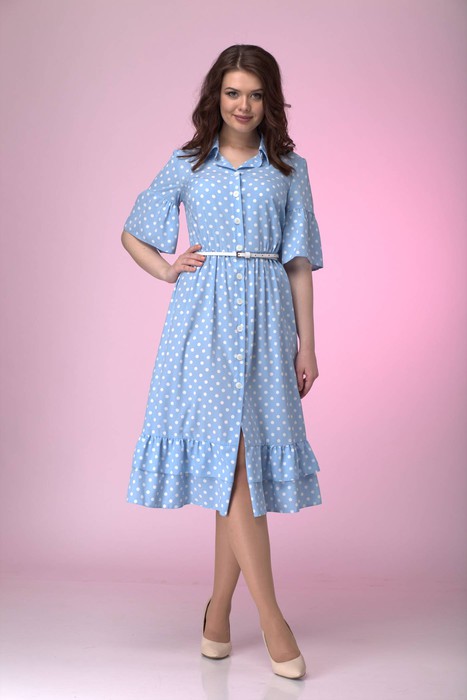 Платье ANELLI 713 голубой/горох