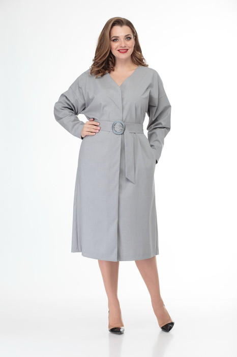 Платье прямого силуэта со спущенными рукавами. V-образный вырез горловины, застежка потойная на пуговицы по всей длине платья.