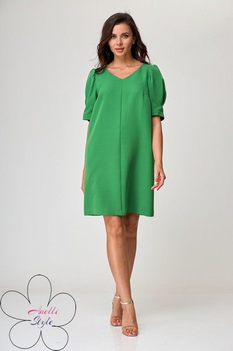 Платье прямого силуэта, длиной до колена. Рукав объёмный по пройме, короткий. V- образная горловина по переду. Карманы в боковых швах. Платье универсальное, как для особых случаев, так и для работы в офисе, невероятно комфортное и стильное. В нем каждая девушка /женщина будет чувствовать себя королевой.