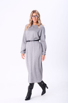 Платье из костюмно-плательной ткани приталенного силуэта длиной чуть ниже колена. Вырез горловины квадратной формы. Отрезное по линии талии. Перед и спинка с рельефами. По спинке средний шов, в котором вставлена потайная молния, внизу разрез. Рукав втачной длиной 3/4, по окату собран на резинку, в нижней части рукава сборка на резинку.