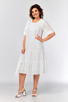 Миниатюрное платье полуприлегающего силуэта с открытыми плечами выполнено из фактурного полотна черного цвета. Характеристики: полуприлегающий силуэт, подкладка, отрезное, фигурный вырез горловины, застежка потайная тесьма молния в среднем шве заднего полотна изделия. Длина по спинке 60 см.