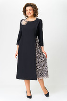 Платье-миди. Выполнено из эко-кожи в белом цвете с вышивкой. Прилегающий силуэт. Верх фигурный, имитация корсета. В среднем шве заднего полотна застёжка - потайная тесьма-молния. Есть подкладка. По задней части шлица 53 см. Длина спинки 108 см