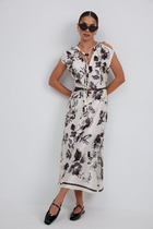 Изумрудное платье-рубашка с накладным поясом с пряжкой.