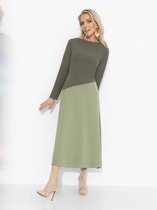 Платье женское прямого силуэта с разрезами в боковых швах. Прилегание достигается за счет нагрудной выточки и талиевой по спинке. Рукав втачной короткий, перед и спинка украшены отрезными цветными полосками. В комплект идет сьемный пояс