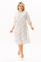 Филау – платье полуприлегающего силуэта из трикотажа и декоративных однотонных вставок. Вырез горловины классический овальный, оторочен по краям кантом. Рукава 3/4, втачные, оторочены манжетами. По бокам от рукавов к юбке – лампасы. На спинке – потайной замок-“молния”.