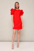 Элегантное платье на запах. Рукав цельнокроенный кимоно. Платье отрезное по линии талии. Силуэт платья - прямой, Оно выполнено из плотного атласа, благодаря чему, оно красиво струится и развивается при хотьбе. Длина платья - 132 см.