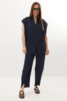 ESENIA Джемпер поло из вискозы с коротким рукавом - Чёрный