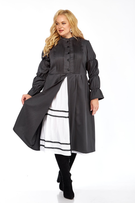 Лиф полочки украшен встречными складками (гофре), добавляющими образу строгости и утонченности.