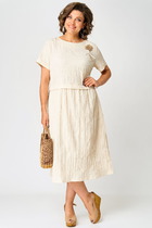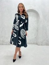 • Платье-миди А-силуэта с декоративными драпировками. Полуприлегающий в верхней части, плавно расширяющийся к низу (А-силуэт), что обеспечивает комфортную и женственную посадку.