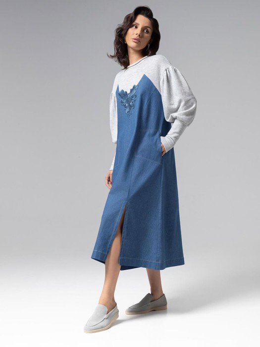 Состав: Костюмная ткань «джинс», трикотаж «футер» (65% хлопок, 30% п/э, 5% спандекс)