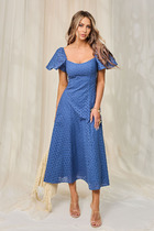 Воздушное платье полуприлегающего силуэта с цветочным принтом. Короткие спущенные рукава. Горловина на внутренней обтачке оформлена "лодочкой". Модель отрезная по талии, собрана на резинку. Низ ровный, без разрезов.