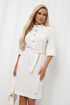Платье женское свободного покроя из трикотажного полотна. Вырез горловины оформлен цельнокроеным воротником-стойкой. Рукава - цельнокроеные с ластовицами для свободы движения. В области линии талии выполнены складки для придания изделию приталенного силуэта.