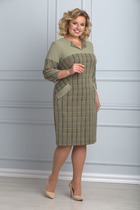 Платье женское из трикотажного полотна «кулирка» с лайкрой в комбинации двух видов ткани: гладкокрашеной и с набивным рисунком и, прямого силуэта, с короткими втачными рукавами, горловиной овальной формы, обработанной втачной планкой. Рукава и низ туники отделаны притачными планками из контрастного материала, на полочке печать, выполненная в технике «шелкография».