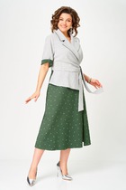 Платье женское свободного кроя . Спинка со средним швом и полукруглым подрезом в области талии. Перед с V-образной горловиной и полукруглым подрезом в области талии. В нижней части переда и спинки сборка в центральной части . Боковые карманы обработаны в шве подреза переда. Правый карман украшен нашивкой. Рукав втачной одношовный длиной до локтя. Фурнитура может отличаться от заявленной на фото.