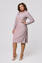 Платье из трикотажного полотна прилегающего силуэта. Ассиметричный вырез горловины в виде капли, обработан дополнительно трикотажной подкладкой до линии талии. Потайная молния вставлена в среднем шве спинки, сзади обработана шлица.