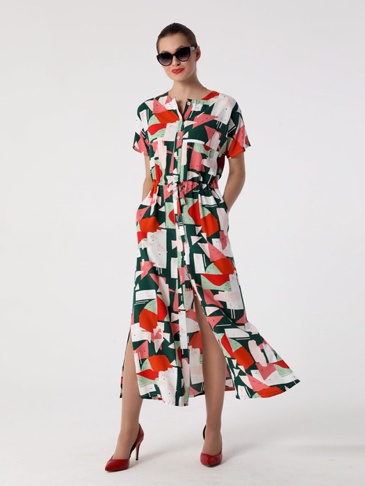 Длинное платье из струящейся вискозы прямого силуэта с круглым вырезом  и цельнокроеными короткими рукавами - это стильный предмет гардероба каждой женщины. Застежка - на петли и пуговицы. Удобные карманы расположены в боковых швах. Линию талии подчеркивает кулиска с эластичной тесьмой по спинке. Фантазируйте с обувью и аксессуарами, и это лаконичное по стилю  платье-рубашка позволит Вам превосходно выглядеть как на прогулке, на отдыхе, так и в офисе.