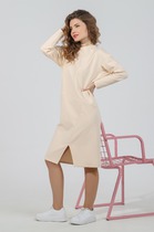 Платье женское свободного кроя. Рукава цельнокроеные с притачной манжетой. Горловина окантована косой бейкой. В комплекте съемный пояс