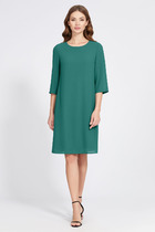 Легкое, удобное платье свободного кроя, выполнено из хлопка. По переду планка с застежкой на петли и пуговицы до линии бедер. Воротник классический, рубашечный на отрезной стойке, вырез горловины V-оброзной формы. На полочке два фигурных клапана. Рукав втачной. В боковых швах предусмотрены функциональные карманы. По спинке отрезная кокетка. В комплекте прилагается съемный пояс из основной ткани, который прекрасно подчеркнет линию талии.