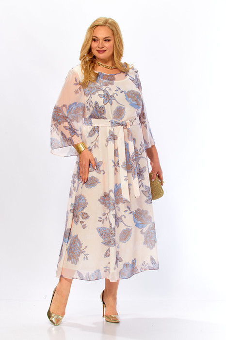 Нежное, воздушное, легкое платье, свободного силуэта , выполнено из струящей ткани, выглядит стильно, деликатно подчеркивает изящность и привлекательность. Модель обеспечивает комфорт и свободу движений, сделает фигуру женственной. Эффектный втачной рукав, расширенный к низу, придает легкость стилю. Округлый вырез горловины. Платье выполнено из шифона, полностью на подкладке. В комплект входит съемный пояс из основной ткани, который прекрасно подчеркнет линию талии.