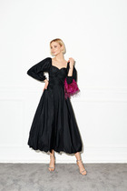 Платье женское приталенного силуэта, ассиметричного кроя выполнено из сочетания бархатной ткани (велюр) и трикотажного полотна с люрексом.  По переду изделия расположены рельефы и декоративная вставка из люрекса. Вырез горловины -фигурный ассиметричный, рукав втачной 3/4. Спинка платья с таллиевыми выточками и потайной молнией.