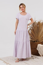 Платье женское нарядно-повседневное полуприлегающего силуэта до талии и расширенное к низу. Платье отрезное по линии талии, вырез горловины V-образный с ассиметричными рюшами из тканей двух дизайнов. Проймы обработаны обтчками. В боковых швах плать обработаны карманы, по низу притавчной волан из отделоной ткани(шитье). декором служит пояс из основной ткани.