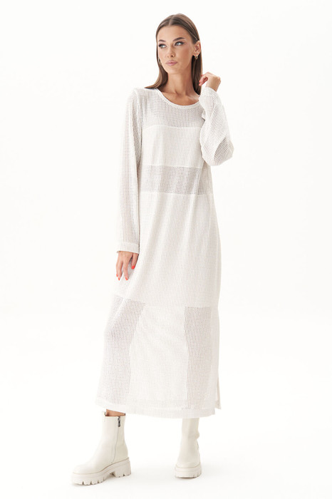 Выполнено из трикотажной фактурной сетки с металлическим напылением - такое платье станет отличной альтернативой вязанным и кружевным нарядам - лёгкое, струящееся, соблазнительное.