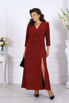 Платье нарядное "Ясмина", расширенное к низу. По груди выточка, вырез горловины у-образный с пришивным украшением (украшение как на главном фото). По спинке потайная молния, рукав в виде воланов с манжетой на застежку на две пуговицы. Край волана рукава обработан швом в подгибку. Низ платья обработан в подгибку.
