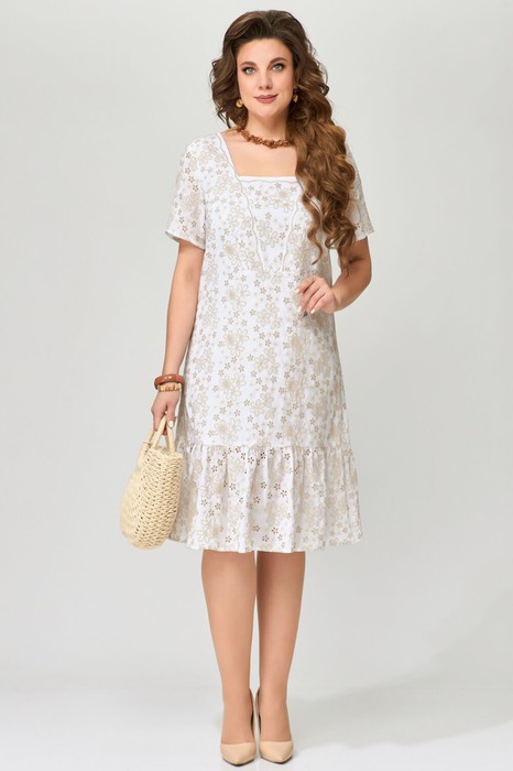 Платье женское "Рогнеда" из хлопковой ткани (решилье) на натуральной хлопковой подкладке, полуприлегающего силуэта. Вырез горловины - квадратный, но низу платья - волан, собранный на сборку. Низ волана обработан швом в подгибку с закрытым срезом. Рукав втачной, низ рукава обработан швом в подгибку с закрытым срезом. По спинке платья по талии две вытачки. Это элегатное платье из хлопкового шитья удобное в носке в жаркую погоду, практичное для выхода в город или на любой праздник.