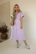 Классическое женское платье -рубашка полуприлегающего силуэта выполнено из легкой струящейся ткани. Изделие со втачными рукавами и высокой акцентной манжетой, рубашечным воротником, карманами в боковых швах, застежкой на петли и пуговицы.