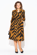 Платье А-образного силуэта с резинкой на талии. Перед с настрочным карманом и клапаном. Горловина V-образной формы. Рукав спущеное плечо с манжетой. В боковых швах карманы.